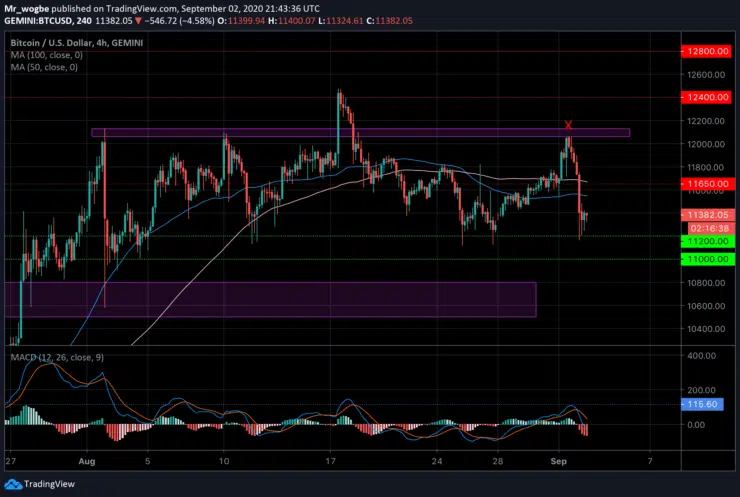 On the flip side, if the current panic in the market continues, we could see the benchmark cryptocurrency slide to the $11,100 support right before we see the $11,000 psychological level. Further declines from this level will open Bitcoin up to a $10,800 price tag and subsequently the $10,500.