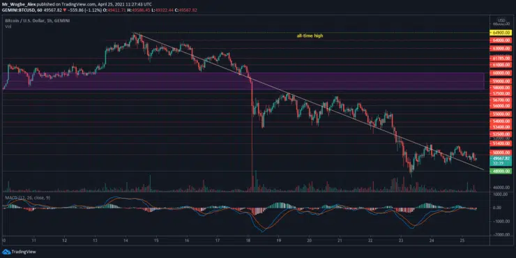 Last Sunday marked the start of Bitcoin’s woes, after the benchmark cryptocurrency shed about $10k under a few hours, with a whopping $10 billion getting liquidated in less than 24 hours. In the days following this significant price drop, BTC recovered halfway and went into consolidation but couldn’t snap out of the underlying bearish bias. That said, the cryptocurrency saw another massive crash, which sent it below the critical $50,000 support level. At press time, BTC is down by 20% over the past seven days.