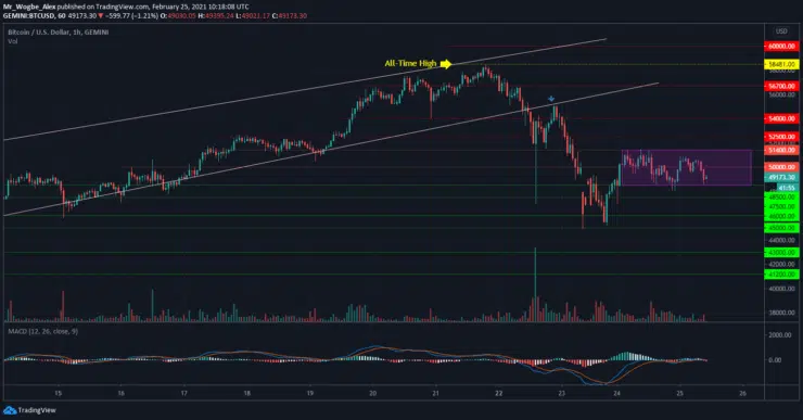 Bitcoin appears to be struggling with regaining its bullish momentum, as the cryptocurrency has gotten confined within a consolidation range for the past 24 hours. BTC is currently in a pass-and-play mode between the $51,400 resistance and the $48,500 support amid thinning volume and volatility.