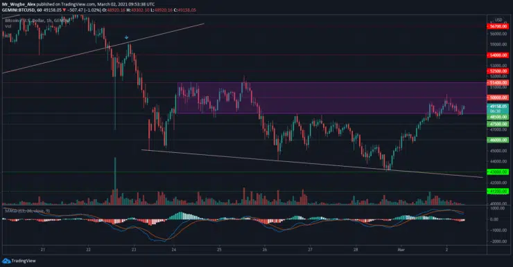 A break above the $50k crucial level will likely catapult BTC to the $54k area once again, which could help the cryptocurrency attempt its ATH at $58k. Nonetheless, BTC bulls are safe as long as they hold the cryptocurrency above the $48,500 price point.