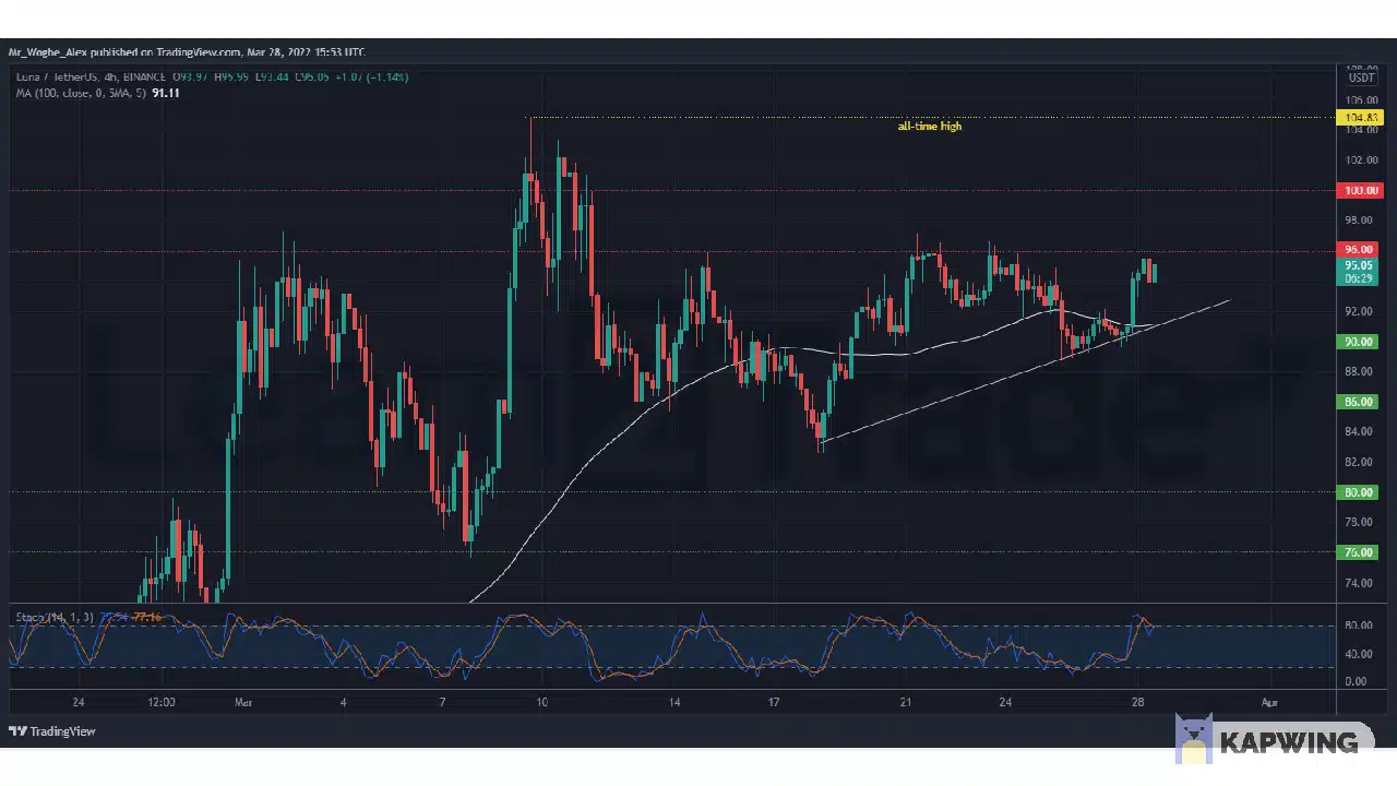 Terra has reclaimed the $95 axis following a sharp correction to the $90 last week. The rebound helped outline a clear trend in the market, as the broader market recorded some impressive gains.