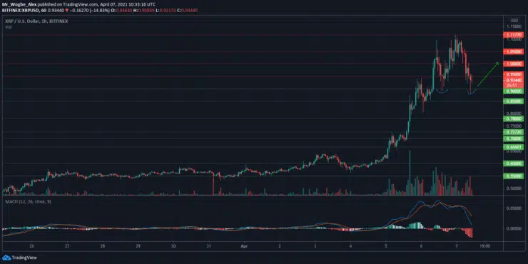 Ripple appears to be taking a breather from its recent massive rally and has fallen below the highly-coveted $1 mark. The fourth-largest cryptocurrency is now trading around the $0.9000 psychological support where some dip buying could likely occur over the coming hours.