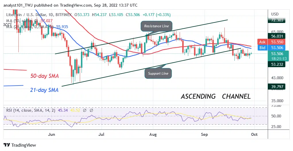 On the 4-hour hour chart, Litecoin consolidates above $52 as it is set for a rebound. The cryptocurrency is now consolidating above the current support. Meanwhile, on September 16 downtrend; a retraced candle body tested the 78.6% Fibonacci retracement level. LTC will fall to level 1.272 Fibonacci extension or $52.09,