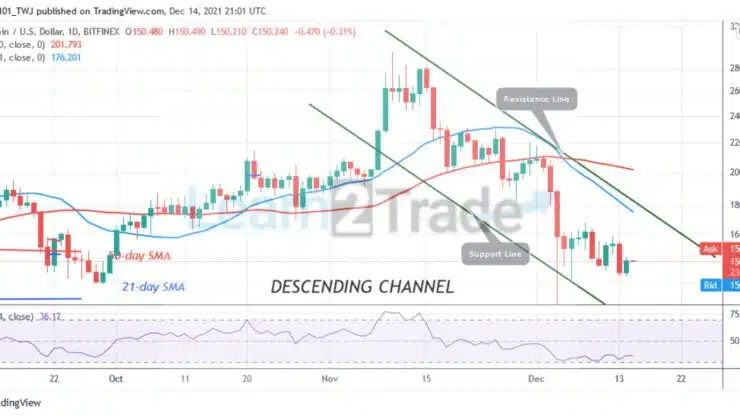 Litecoin’s (LTC) price is in a downtrend. The cryptocurrency is now retesting the September 28 historical price level of $142. Today, the bullish candlestick is indicating an upward movement of the altcoin. In previous price action in September, the market rebounded above the current support to reach the previous high of $280. Nevertheless, if Litecoin rebounds above $148 support, the bullish momentum will break the initial resistance at $165 and rally to $200. A break above the $200 will propel the cryptocurrency out of downward correction.