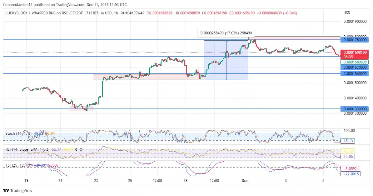 The price of LBLOCKUSD rose by some 17 percent from the $0.000150 price level to reach the current peak before eventually moving into a range zone. After the LBLOCK price peaked at $0.0001780 in the early days of the month, the market has been ranging between the two significant price levels of $0.000178 and $0.000167.