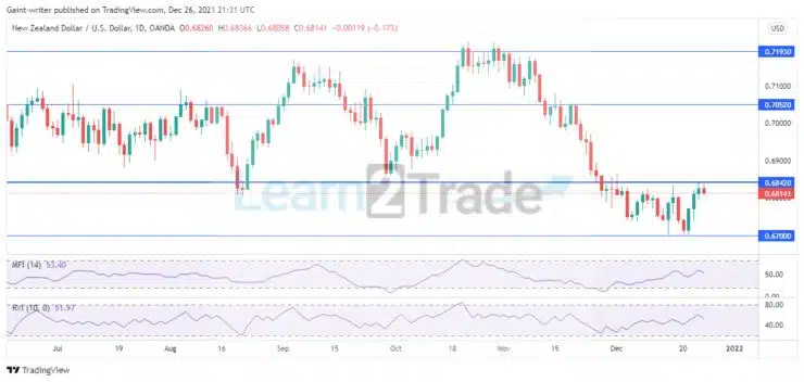 The bears, therefore, wield more power as the market proceeds below the price level of 0.71930. The bearish power moved with vigor with the price level, breaking through the 0.68420 level of significance. And the price level is ready to proceed further with a more bearish moment. The Money Flow Index indicator shows the overbought and oversold regions of the price market. The signal flow fails to reach the 80.00 regions and is seen progressing downward.