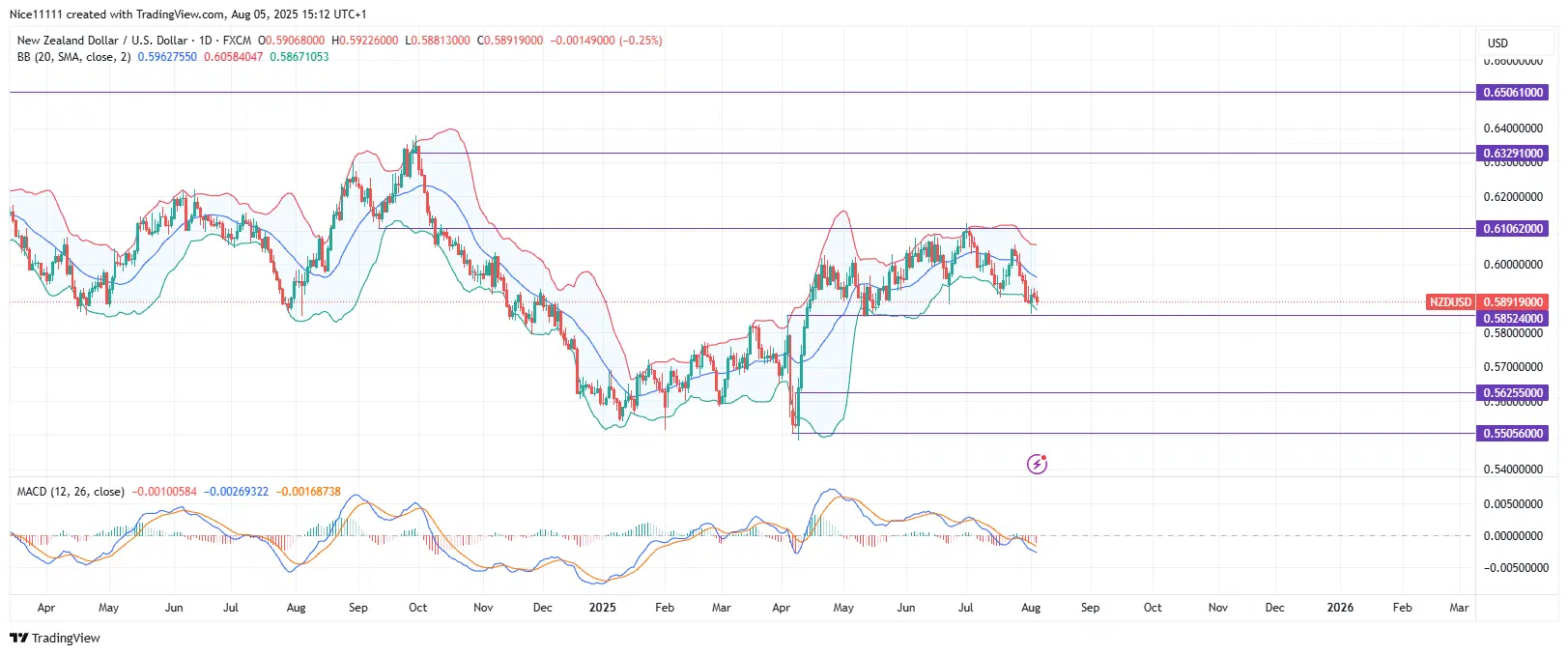 On the lower timeframe, the structure is bearish. Price is dropping sharply toward the key support level of 0.58520 on the 4-hour chart. A successful retest of this support zone may provide buyers with the opportunity to regain bullish momentum and mount another attempt to retest the 0.61060 resistance level. However, until such recovery is seen, the short-term trend remains in favor of sellers.