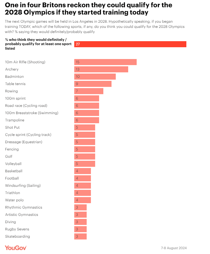 For context, since 1968 only 190 men have ever run 100 metres in under 10 seconds. That represents roughly 0.000002% of the global population. Yet 6% believe they could compete with athletes who dedicate their lives to shaving milliseconds off a run.