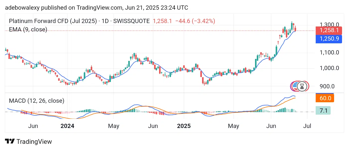 The XPT daily chart has been registering some notable price moves. The market had maintained its upward climb for most of the previous week, but the current pullback appears significant—even though the market has only retraced downward for two sessions.
