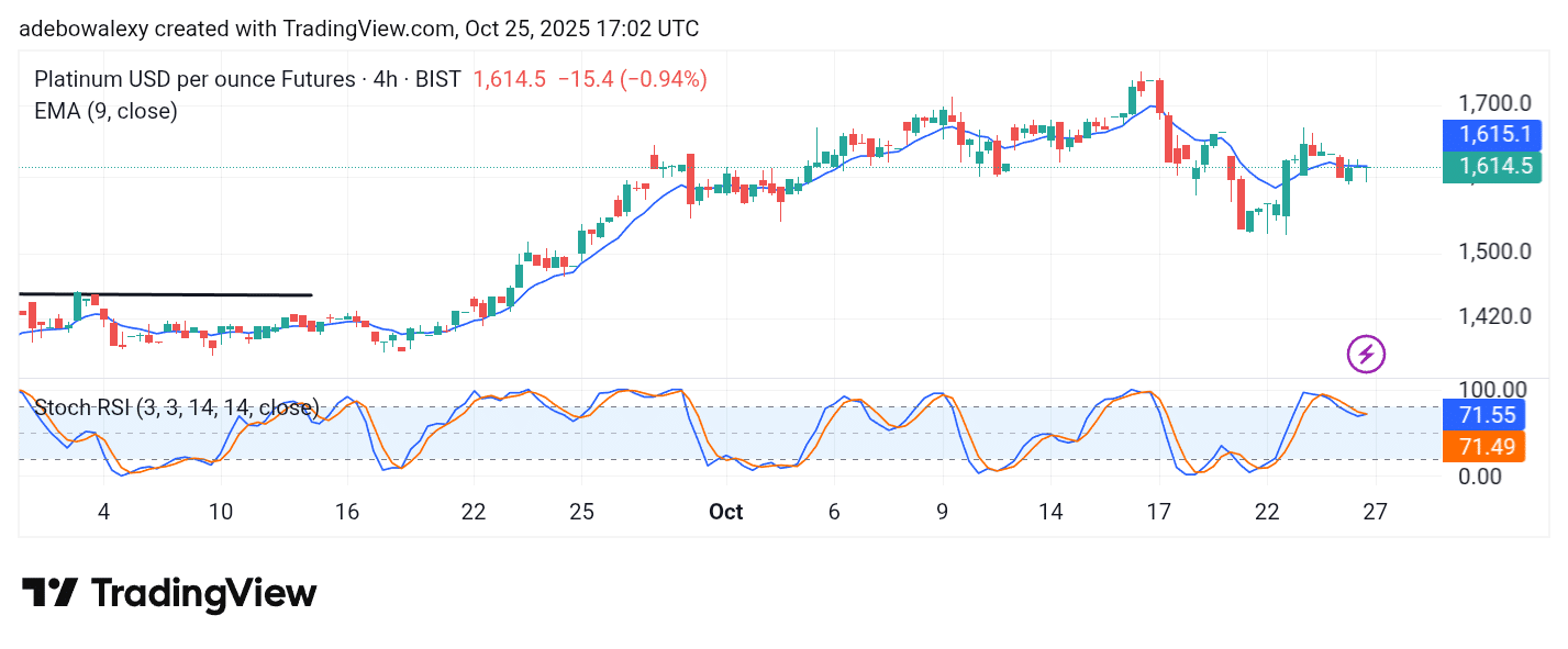 In addition, it keeps hugging the 9-day EMA curve. Meanwhile, the SRSI indicator lines have an upward trajectory with their terminals converged for a crossover. This points to the fact that this market is gearing up for some more upward movement. Therefore, traders can anticipate more upside retracement toward the $1,700 price level.