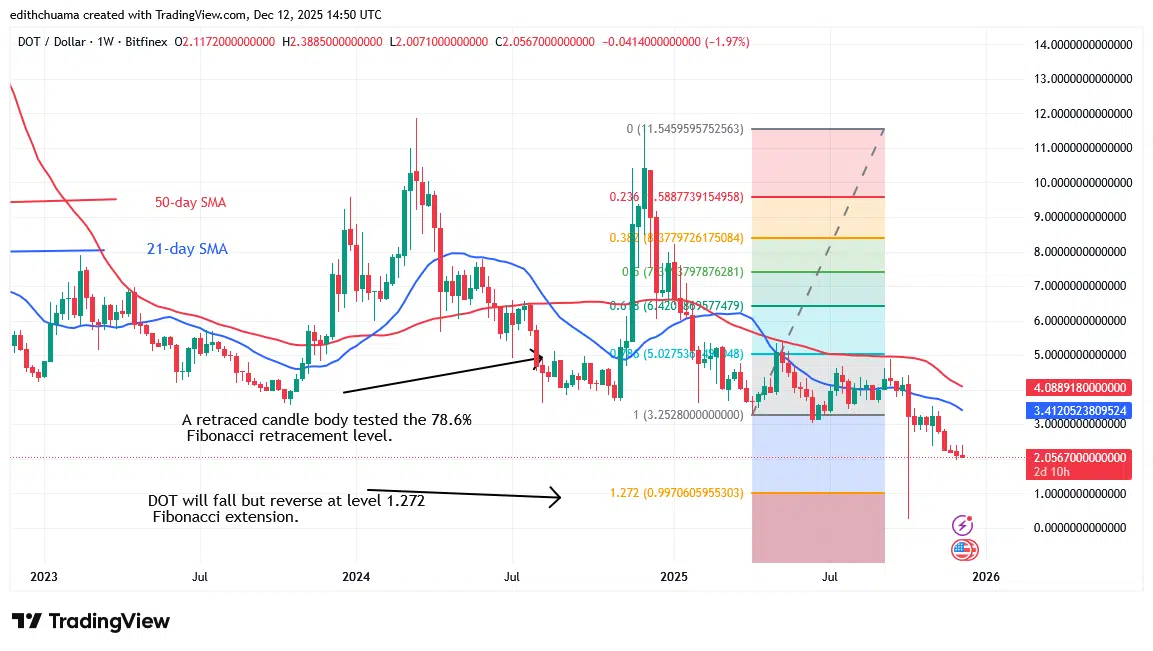 A breach below the $2.00 support level will indicate the resumption of the decline. The altcoin will fall to a low of $1.00, or the $0.25 low. Meanwhile, the DOT price is $1.96 and is steadily falling to the downside.