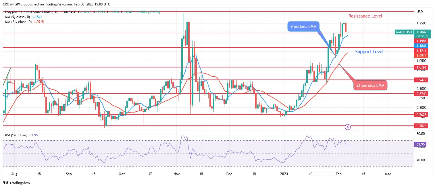 MATIC/USD is bullish in the long-term outlook. The triple bottom chart pattern formed at the support level of $0.76 on January 02 is still driven the MATICUSD upside. MATIC market is still dominated by buyers. Buyers’ pressure was sufficient to cause the currency to advance northward. The price passed through the $1.12 and $1.19 resistance levels as buyers gained strength. The resistance level of $1.31 was tested on 04 February. The coin is pulling back at the moment.