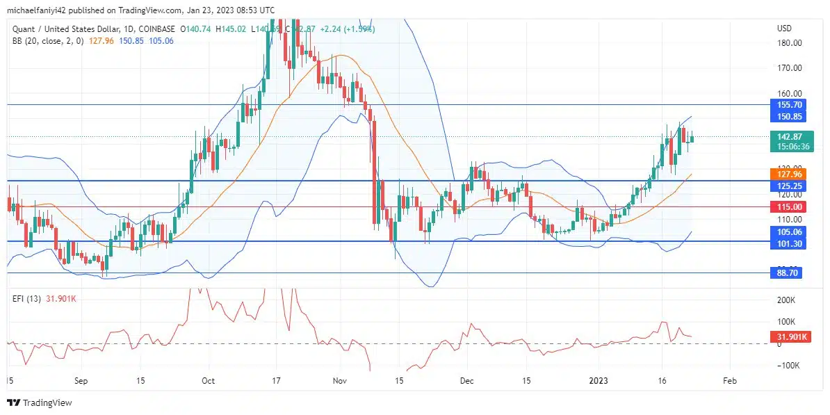 The Quant market is pumped to reach higher price levels. Buyers have been encouraged to push for higher prices since it exited the consolidation zone between $101.30 and $125.25.