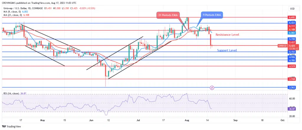 The white metal is currently trading in a negative trend below the 9-period and 21-period exponential moving averages as the fast EMA is crossing the slow EMA lower. The period 14 signal lines of the relative strength index are bending upward at 51. Silver’s price may rise and test the $24 and $25 resistance levels if buyers are able to hold the $22 price level and the $23 resistance level is breached. If sellers apply more pressure, a breakdown of the $22 level would cause a price break lower that would have the $21 and $20 price support levels as its targets.