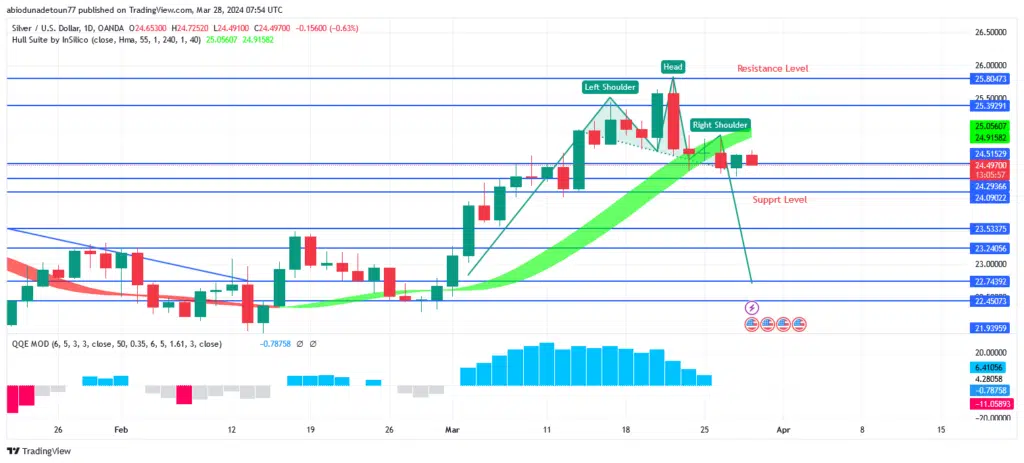 In the event of significant purchasing pressure, a price breach of $25 would target the $26–27 range. Silver may drop and test the $23 and $22 support levels if sellers can maintain the $25 price level and the $24 support level is broken.