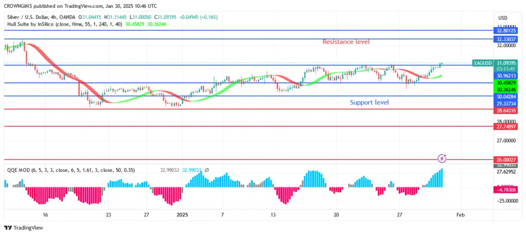 The XAGUSD’s 4-hour chart shows an increasing trend. Near the $28 barrier level, a double bottom chart pattern appeared, signaling a significant change in direction. The first obstacle in Silver’s path is the $30 threshold. It was forbidden to go beyond the predetermined price cutoff point. Costs are currently around $32 per unit because to consumers’ strong purchasing power.