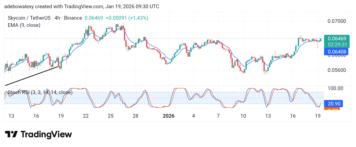The SKY/USDT market has made a notable upside recovery over the past sessions. Also, the ongoing session can be seen trading above the 9-day Exponential Moving Average (EMA) line.