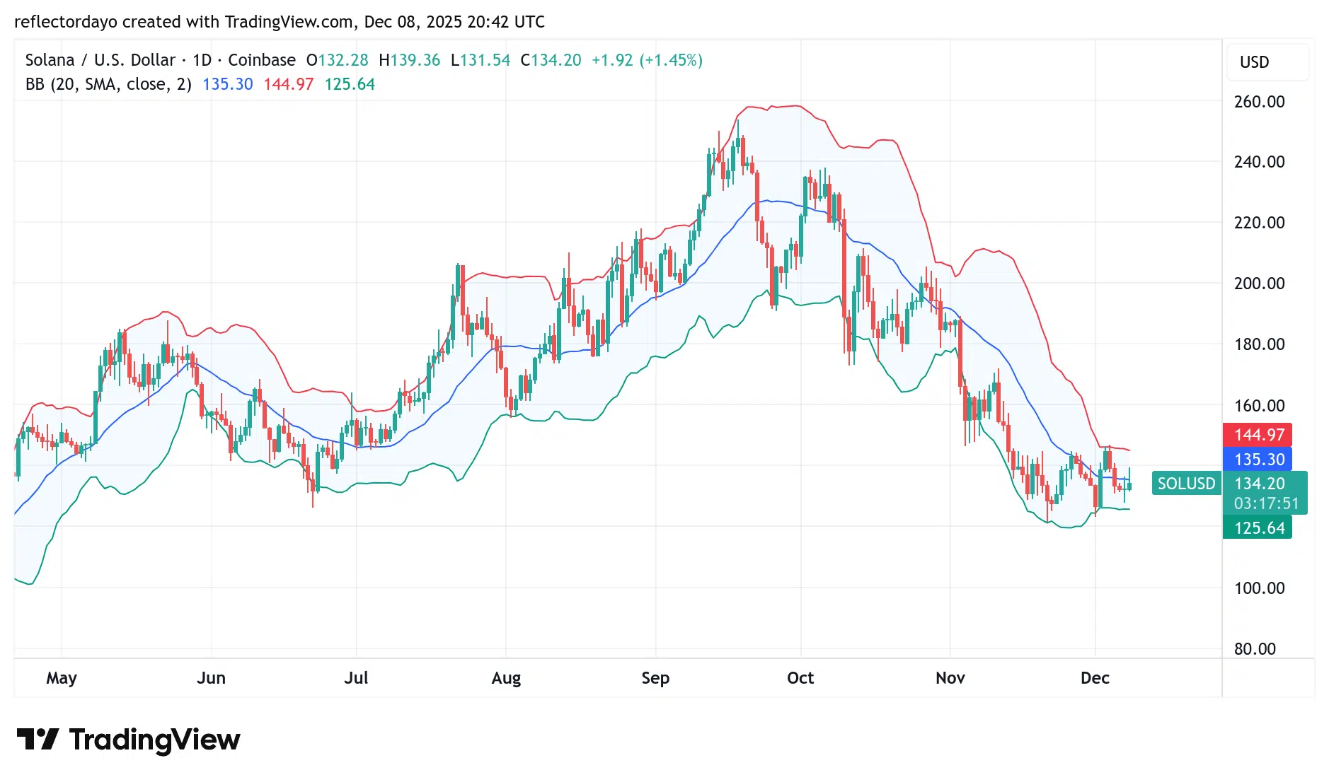The Solana market has entered a consolidation phase around the $132 price level after the recent bearish run found relief at this zone. The downtrend began in September after the market peaked at $252, followed by a consistent decline in market highs. Although bullish sentiment initially attempted to turn the market around near $180, sellers regained control and forced the price lower, deepening the bearish pressure.