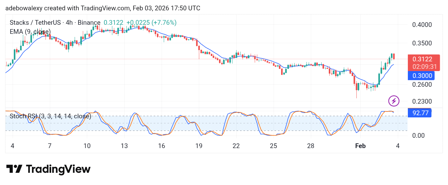 Stacks Advances Above the 9-Day EMA Curve, Faces Opposition (Continued)