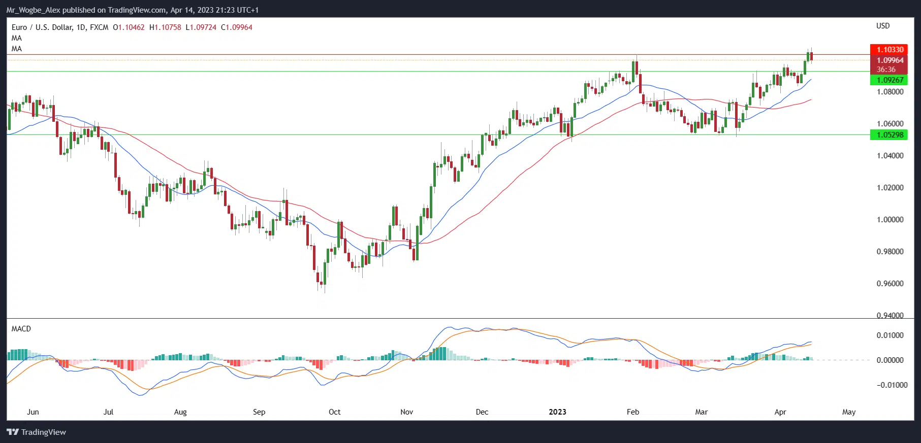 EUR/USD is the talk of the town as the pair continues to trade above the yearly high of 1.1033 against the US dollar.