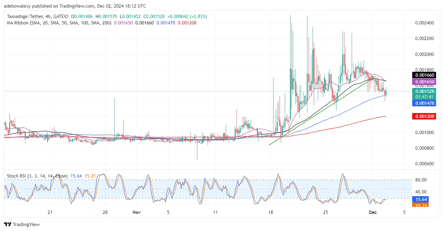 Price activity in the Tamadoge 4-hour market recently took a slight dip. However, buyers seem to have located favorable support at the $0.001500 price level. As a result, the market contracted, and the upside retracement continued in the ongoing session.