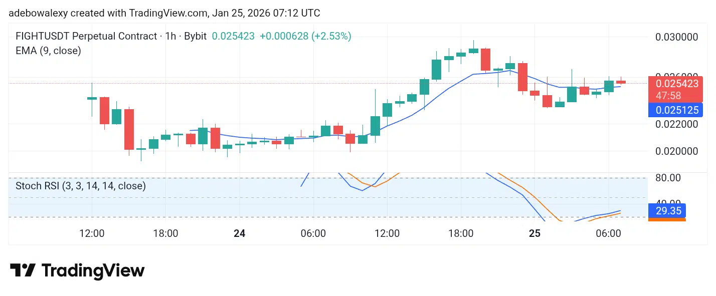 The FIGHT coin tops this week’s list of trending coins, having recorded a price increase of 20.83% over the past 24 hours at the time of writing. Its market capitalization stands at $56.92M, while trading volume is $292.97M.