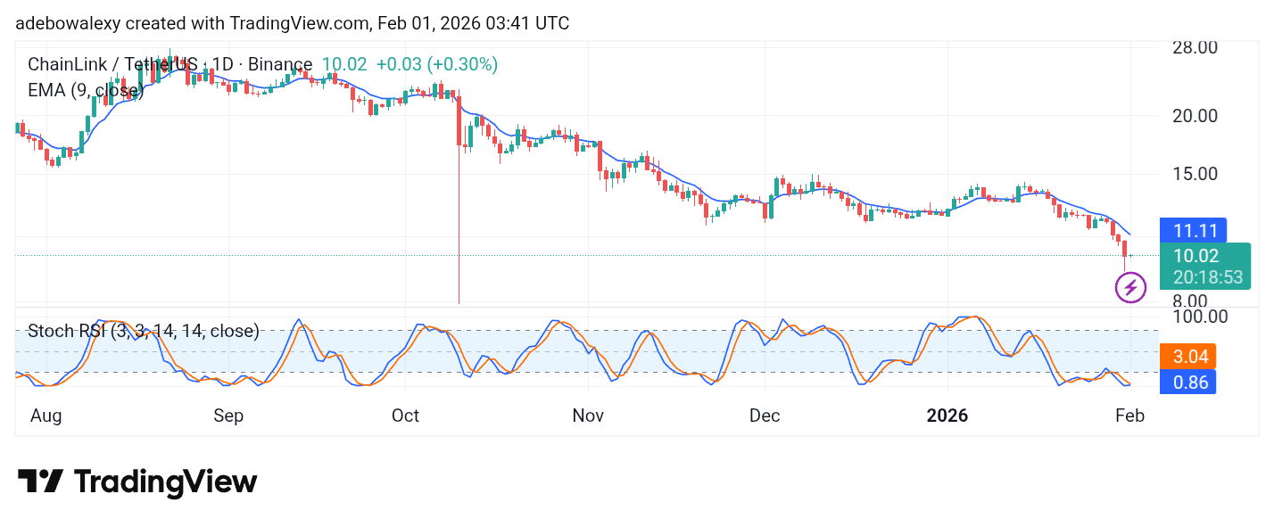 Rounding out the list is Chainlink, which has posted a 7.03% price decline over the past 24 hours. The token’s market capitalization stands at $7.09 billion, while trading volume is $1.31 billion.