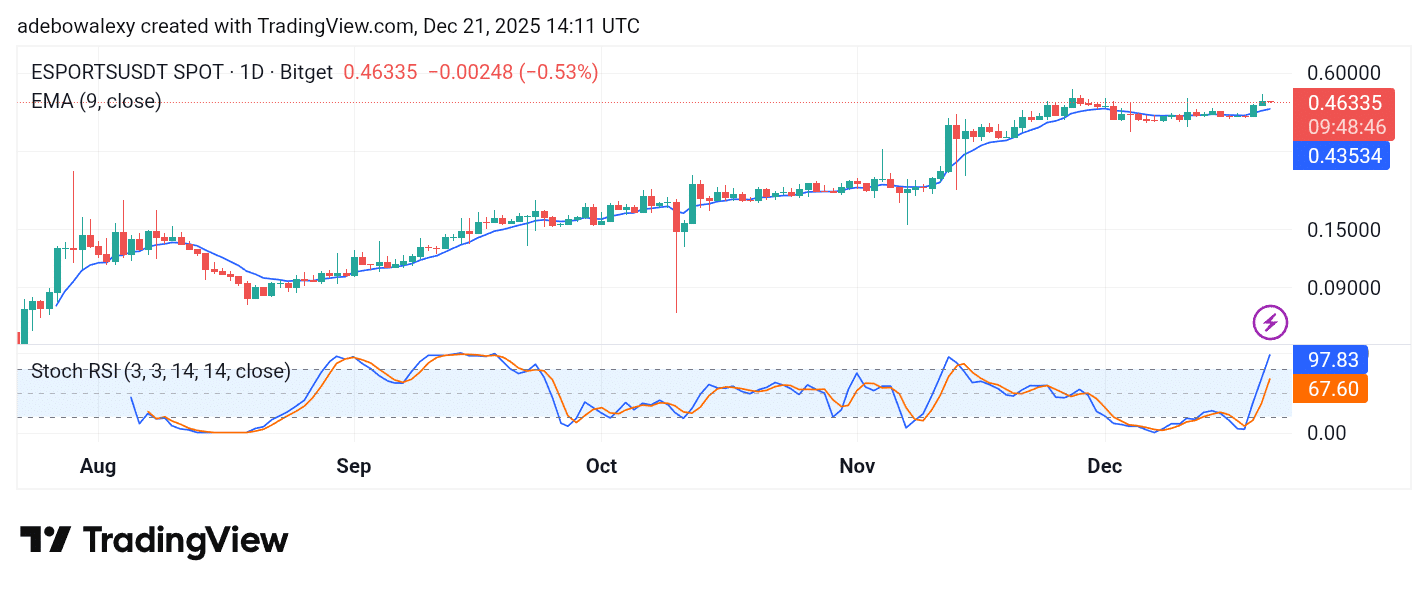 The ESPORTS token can be seen retaining the same spot from last week. Despite this, the token has registered a price decline of 3.37% in the past 24 hours. Also, its market capitalization stood at an impressive $106.95M, while its trading volume was $855.41M.