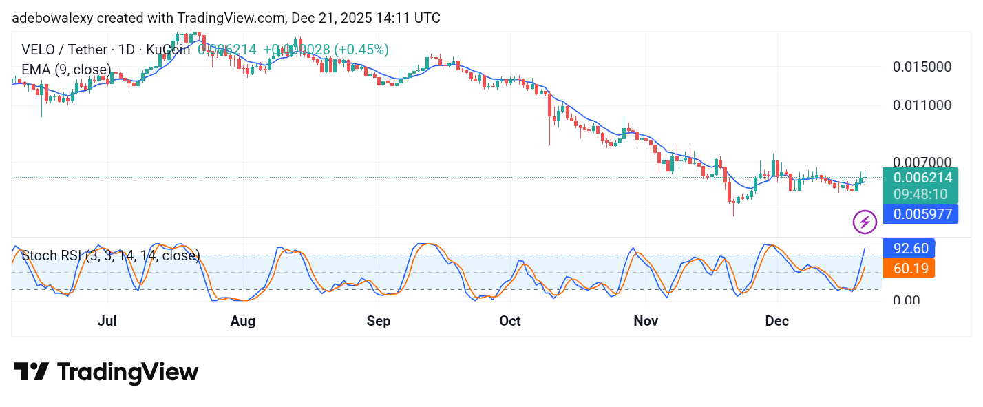 The last, but definitely not the least, token on this week’s list is the VELO coin. The token has recorded a price decline of 0.3% in the past 24 hours. Meanwhile, its market capitalization stood at an impressive $108.86M. Its trading volume was registered at $174.34M as of the time of writing.