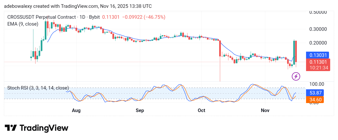 And last but not least is the CROSS token. This coin has registered a price decline of 22.04% in 24 hours. Meanwhile, its market capitalization is $37.11M with a trading volume of $80.27M.