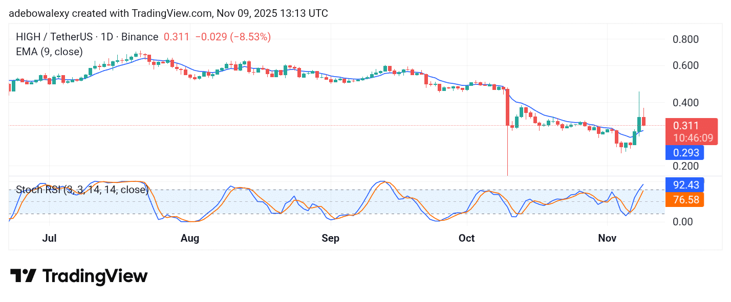 The HIGH token holds the fifth position but stands as the second-best performer among this week’s trending coins, posting a 9.02% price increase in the past 24 hours. It currently has a market capitalization of $24.33 million and a trading volume of $118.98 million.