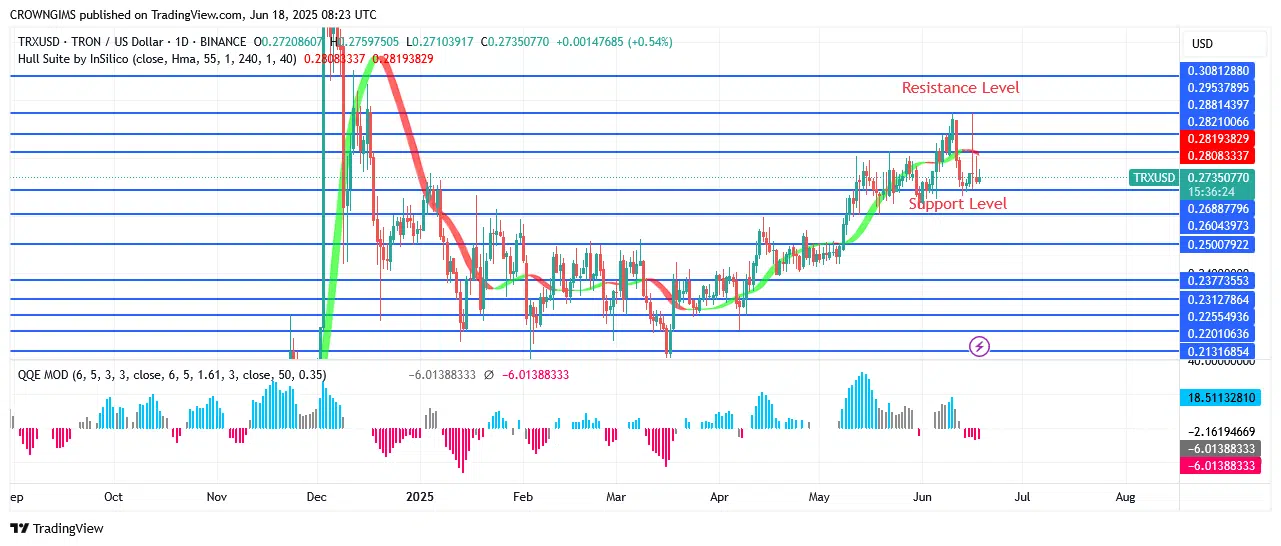 If the buying trend continues over $0.29, the price of TRON might be poised to break through the $0.30 and $0.31 barriers. If the price stays below $0.28, it can approach the $0.26 and $0.25 scripts.