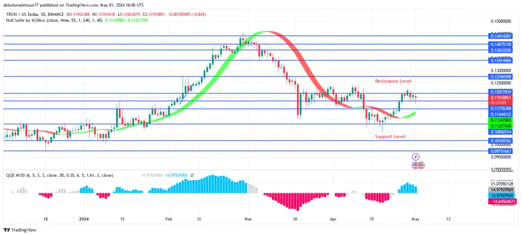 The $0.127 and $0.134 barriers may be overcome by the price of TRON if the purchasing trend persists above $0.129. Alternatively, if the downward trend persists below $0.117, the price can drop to the levels of $0.114 and $0.108.
