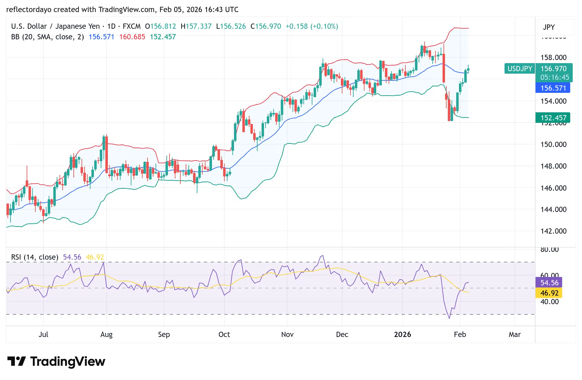 Following a sharp decline in USD/JPY, the pair has staged a strong and nearly symmetrical bullish recovery as the US Dollar regained notable strength against the Japanese Yen. The initial bearish pressure eased significantly after price fell from above the key 156.00 level and found a pivotal support zone around 152.00.