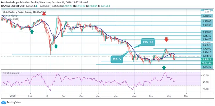 After the close of the second week in negative territory, the USDCHF pair appears to have entered a phase of consolidation as the US Dollar Index rallies, supported by safe-haven flows. As the dollar began to gain strength on Tuesday, USDCHF rallied above 0.9100 level as a result of a moderate rebound, and last saw a 0.64% rise on the day to 0.9152 level.
