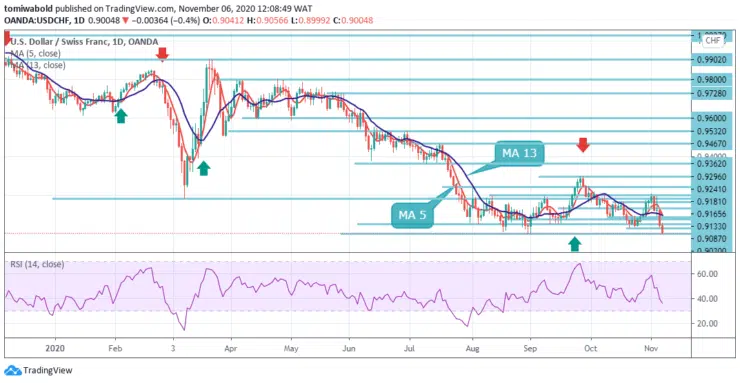 The dollar has resumed its downtrend against the Swiss franc as USDCHF wobbles toward two-month lows beneath the 0.9030 level to reach session lows dangerously despite the oversold condition. The greenback has depreciated about 0.5% so far today amid a broad-based USD weakness with equity markets surging on US election uncertainties.