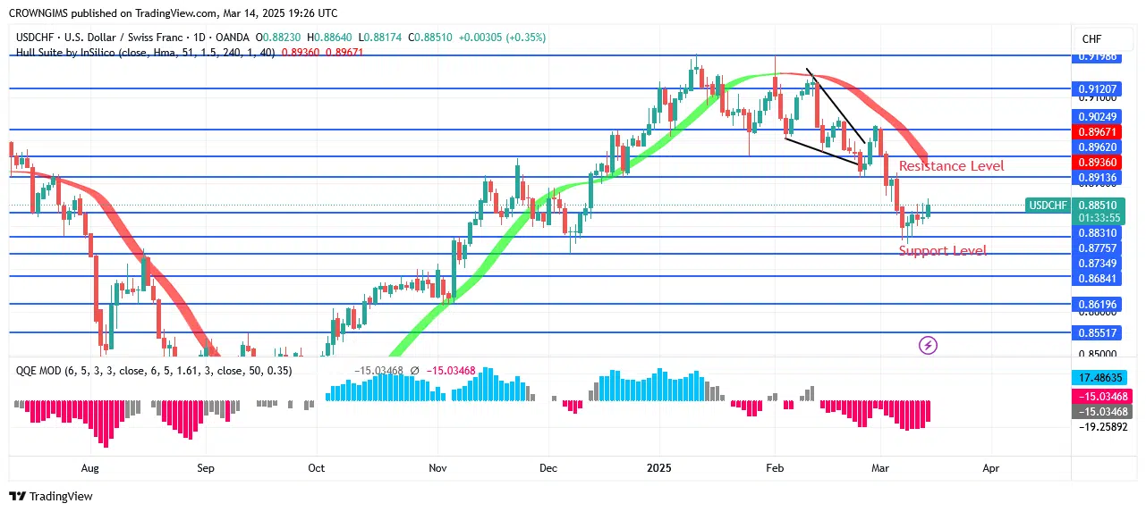 USDCHF can increase above $0.90 and get closer to the $0.91 hedge levels if the buying momentum can hold above the $0.89 resistance position. However, if customers put in enough effort to shift the price from the $0.88 to the $0.87 range, merchandisers can lower the price below $0.86.