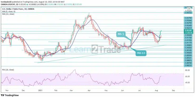 During the early European session, the USDCHF pair remained bid and was last seen hanging near two-week highs, around 0.9170 – 0.9220 levels. The pair’s upward trajectory is fueled by the greenback’s rise. With 0.08 percent gains, the USDCHF held over 0.9200 levels.