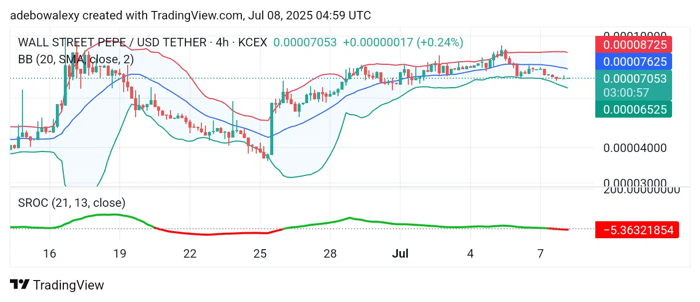Wall Street Pepe Bulls Retain Support Above $0.00007000