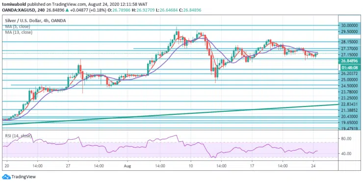 Silver stays lackluster at around $26.45 level, up 0.25 percent a day, during Monday’s trading session in European markets. The White metal bounces off near-term lows near $26.20 level while prices increased as risk sentiment improves after the U.S. drug regulator approved the use of blood plasma from recovered COVID-19 patients as an alternative for treatment.