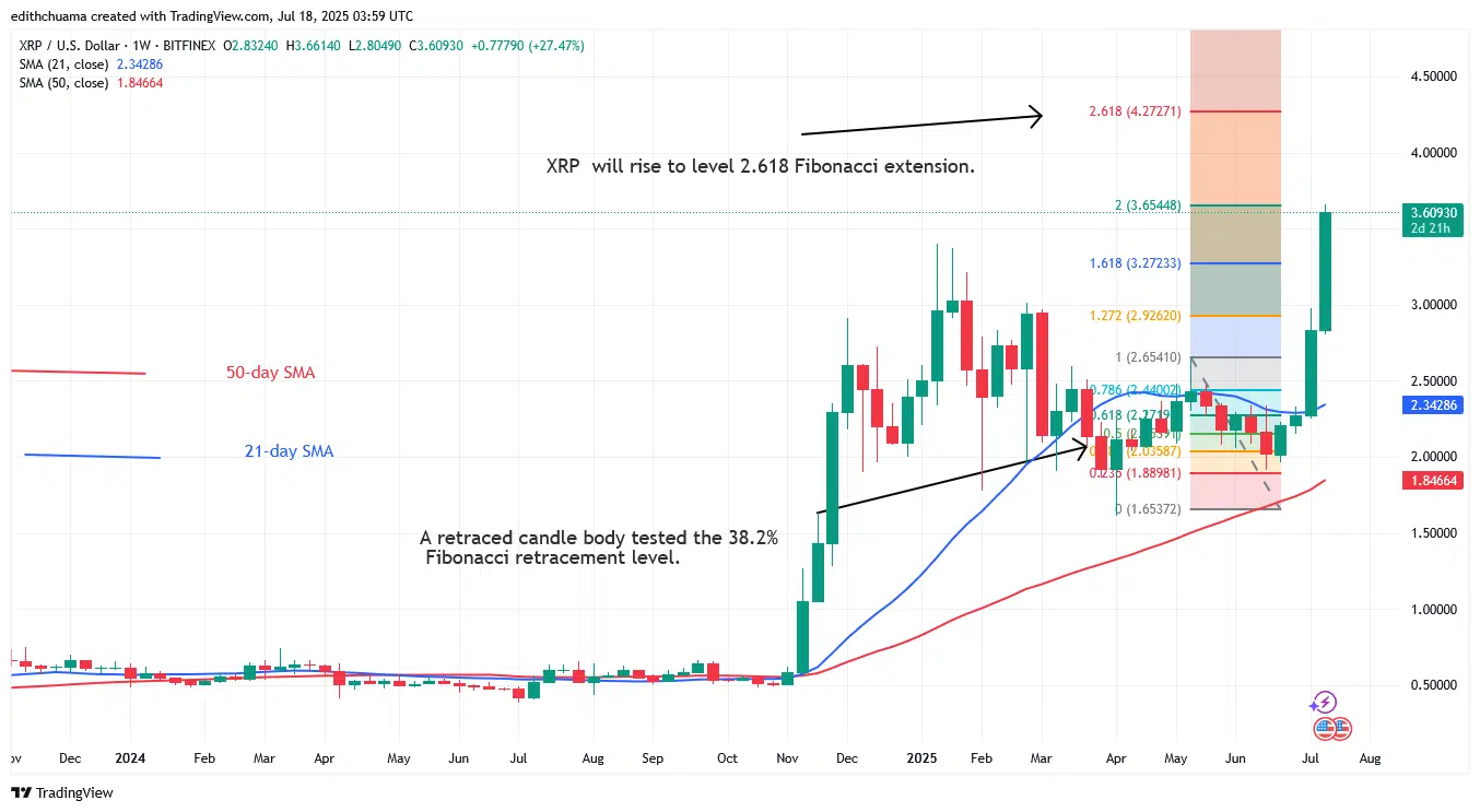 XRP’s price has risen after breaking out of its range-bound movement but stalls below $3.60. The bullish trend broke the $2.65 and $3.00 barriers. The crypto price reached a high of $3.66. The altcoin has reached a new high but has now stopped below the $3.60 peak. According to the price prediction, the positive trend will continue to rise.